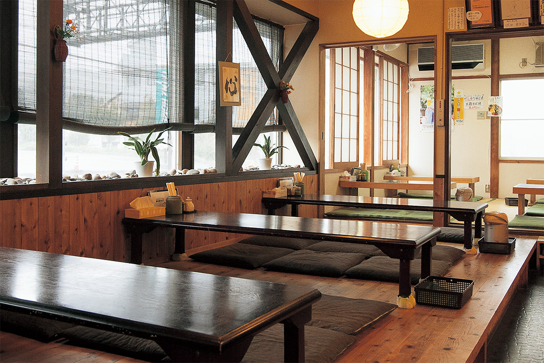 「郷土料理の中でもとりわけ個性的で味わい深く、郷土料理の傑作」とまで言い切り、富倉そばにほれ込んだ店主の・小野宣さん。富倉出身の本店の親方の下で修業を積み、飯山市内に開店した。そば粉は国内産の玄そばを店内の石臼で石挽きし、市郊外の畑で育てたオヤマボクチを店内でつなぎに加工するなど、原料づくりからこだわった、おいしいそばが評判を呼んでいる。毎朝手打ちする細めの麵は、コシが強く洗練された味。抹茶塩でいただくサクサクの天ぷらと合わせるのもおすすめ。